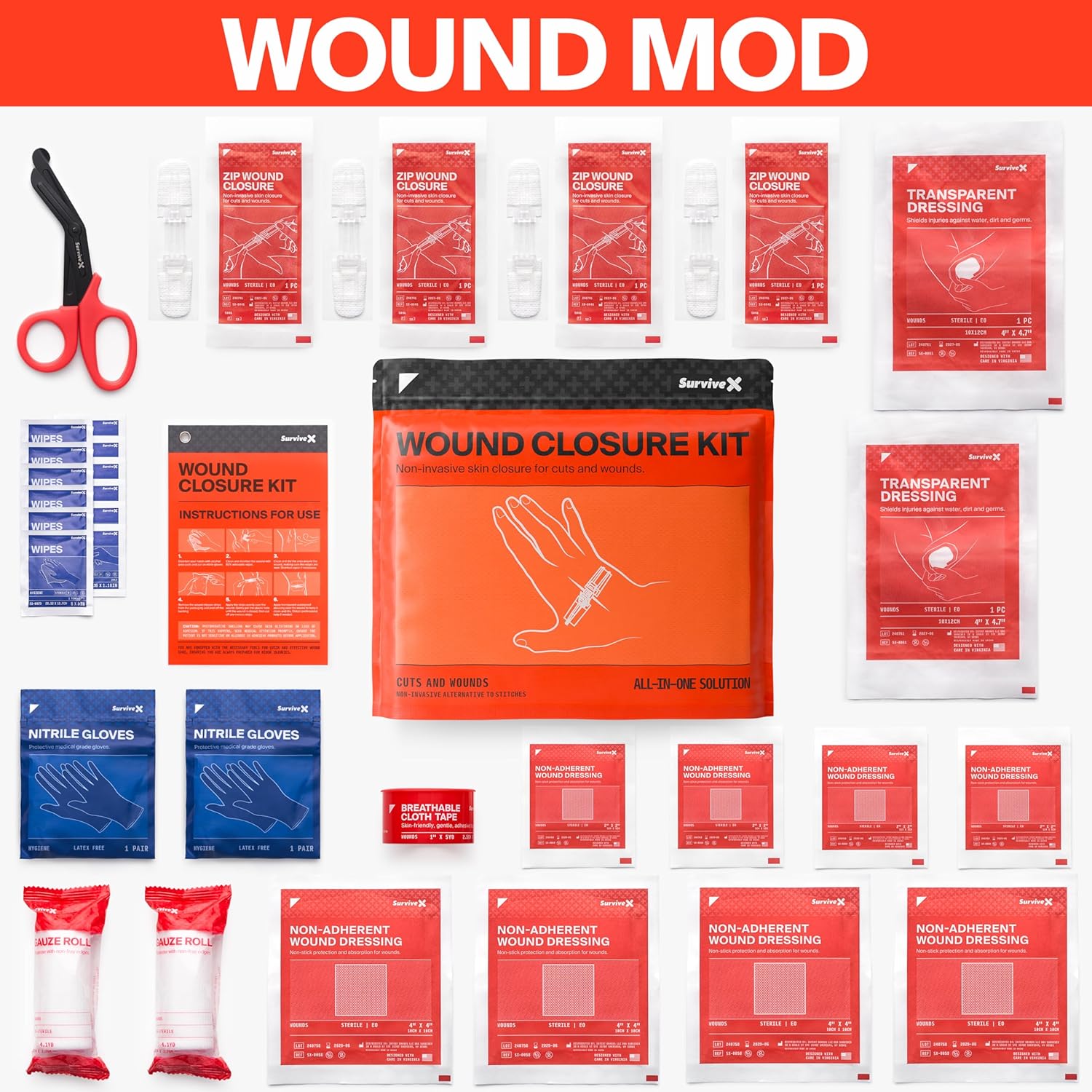Includes: 4 zip stitch wound closures, 2 transparent waterproof dressings, first aid essentials